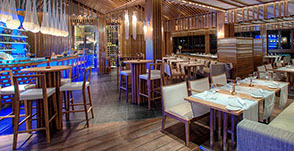 Днем в ресторане царит настроение непринужденной роскоши, а по вечерам гостей ждет отдых под открытым небом в элегантном окружении. Стильный пляжный ресторан предлагает прекрасные виды на отель Burj Al Arab Jumeirah и великолепное меню блюд из морепродуктов в средиземноморском стиле, созданное новым шеф-поваром. По вечерам ресторан Shimmers превращается в настоящую жемчужину двухкилометрового частного пляжа — отдохните в баре на побережье и полюбуйтесь уникальными видами на городской пейзаж Дубая. Этот оживленный ресторан идеально подходит для встреч после рабочего дня или вечера в уединенной обстановке.