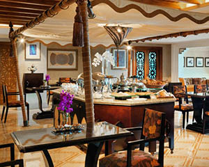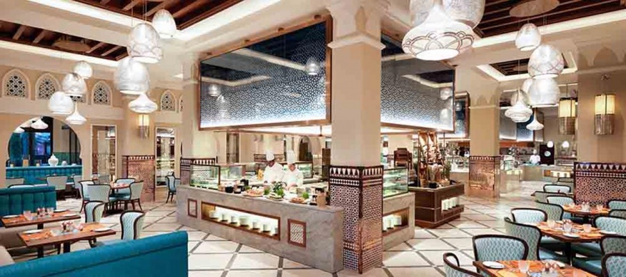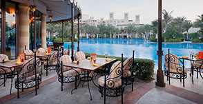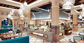 Удобно расположитесь в этом ярком и элегантном лаунж-баре и пробуйте деликатесы из Марокко, в которых прослеживается влияние французской кухни, включая изысканные десерты и пастийя (сладкий пирог с курицей). Приходите отведать любимые напитки жителей Эмиратов, обосновавшихся в Дубае: чай со специями и каракский чай, в по-домашнему уютной обстановке, неспешно наблюдая за тем, что происходит вокруг.