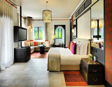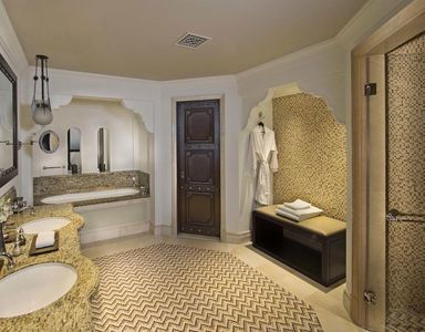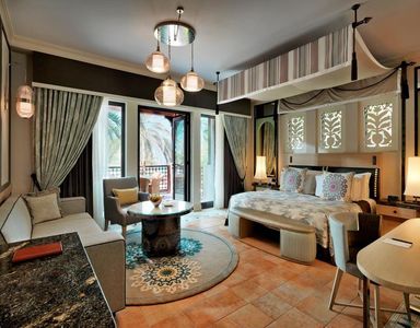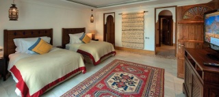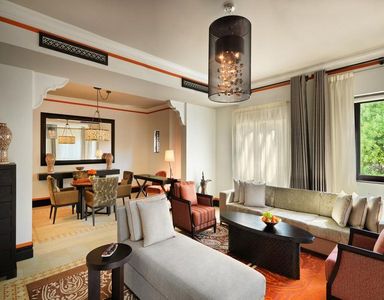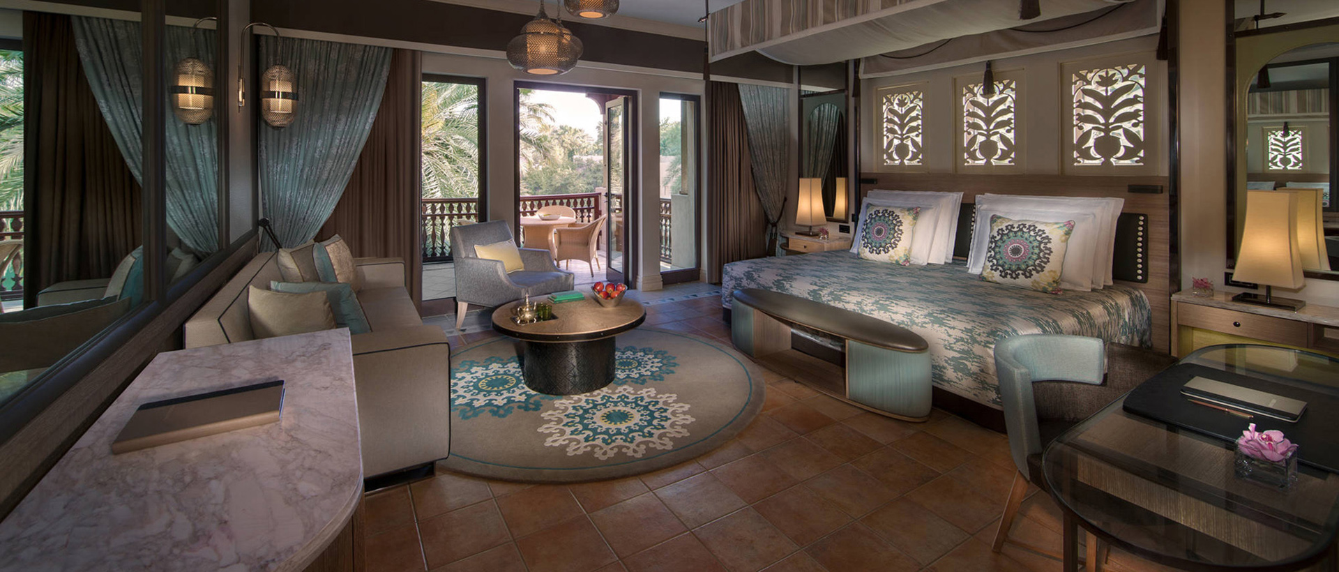 Все сьюты оформлены в классическом арабском стиле и представляют собой великолепно декорированную просторную гостиную, обеденную зону и отдельную спальню.
