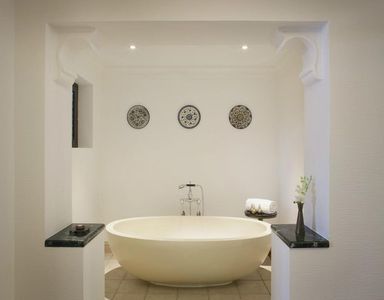 Гости, проживающие на 2-м этаже, могут пользоватьсябалконом, а на первом- просторной уединенной террасой. К услугам гостей большая ванная комната, отделанная мрамором. На каждой вилле имеется батлер- дворецкий, который следит за потребностями гостей и обеспечивает безукоризненное обслуживание.