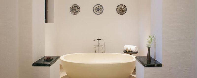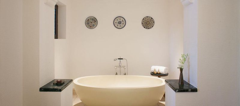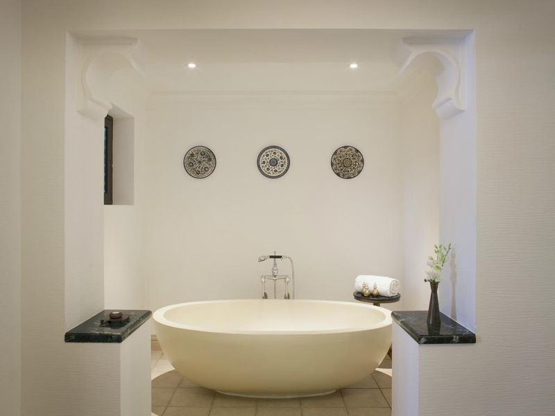 Утопающий в пышной зелени садов и декорированный в бело-голубых тонах, отражающих бескрайнее небо вокруг курорта, он создает атмосферу великолепия и умиротворения. Мебель в современном ближневосточном стиле, просторная гостиная, зона отдыха и спальня располагают к отдыху и расслаблению. Уютная и комфортабельная обеденная зона поможет гостям почувствовать себя дома.
