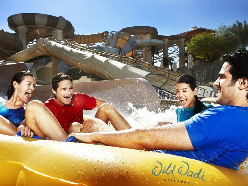 Если не хочется идти пешком по территории комплекса Madinat, можно вызвать лодку абра - отвезут и на местный базарчик, и к ресторанам. Около каждой виллы есть специальные остановки. Также можно по территории проехать на багги - до аквапарка, например. Эти маленькие автомобильчики по территории отеля ездят круглосуточно. Заказывать средство передвижения можно заранее. На багги передвигаться получается быстрее, а на лодке - романтичнее и интересней. По каналам можно даже просто покататься, бесплатно. Аквапарком Wild Wadi гостям отеля Dar Al Masyaf, и другим, входящим в комплекс, можно пользоваться также бесплатно.